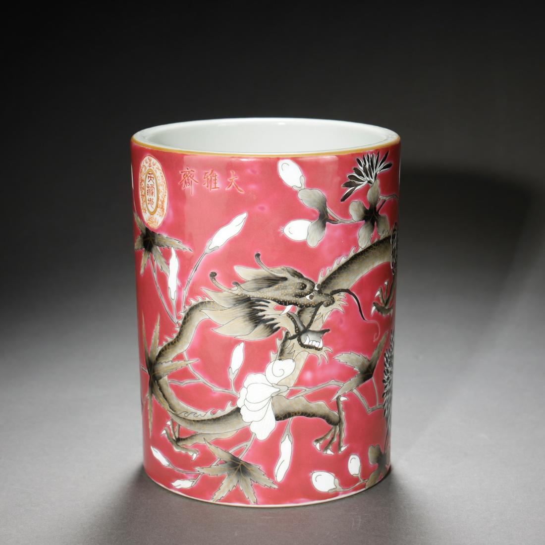 A FAMILLE ROSE CLOUD-AND-DRAGON PATTERN BRUSH POTFeb 26, 2026A Qing Dynasty Doucai dragon pattern pen holderFeb 28, 2026A DEHUA WHITE PORCELAIN BRUSH POT WITH SEA DRAGON DESIGNFeb 28, 2026Chinese Wucai Clouds Dragon Design Porcelain JarFeb 22, 2026THE CRIMSON PORCELAIN PEN HOLDER WAS MADE BY HONGXIANFeb 27, 2026A Qing Qianlong pastel landscape drawing pen holderFeb 28, 2026A Qing Yongzheng pastel brocade ground edge ink alum red gold-painted dragon pattern pen holderFeb 28, 2026A Rare Famille-Rose Flower and Dragon Pattern JarMar 04, 2026An Exquisite Ink Color Flower and Bird Pattern with poem Brush PotFeb 24, 2026Jar with Dragon Pattern, Pre-Ming DynastyFeb 24, 2026A BRONZE GLAZE BRUSH POT WITH RESERVED FLOWER-PATTERNED DISH DESIGNFeb 21, 2026A WUCAI (FIVE-COLOR) HIGH-FOOTED CUP WITH DRAGON AND PHOENIX PATTERNMar 07, 2026FAMILLE ROSE AUSPICIOUS BEAST PATTERN PORCELAIN PEN HOLDERMar 01, 2026A colorful dragon pattern jar made in the Xuande period of the Ming DynastyFeb 27, 2026An Exquisite Wucai Auspicious Cloud,Dragon and Phoenix Pattern Brush PotMar 04, 2026WUCAI COLORED DRAGON PATTERN PORCELAIN JARMar 01, 2026