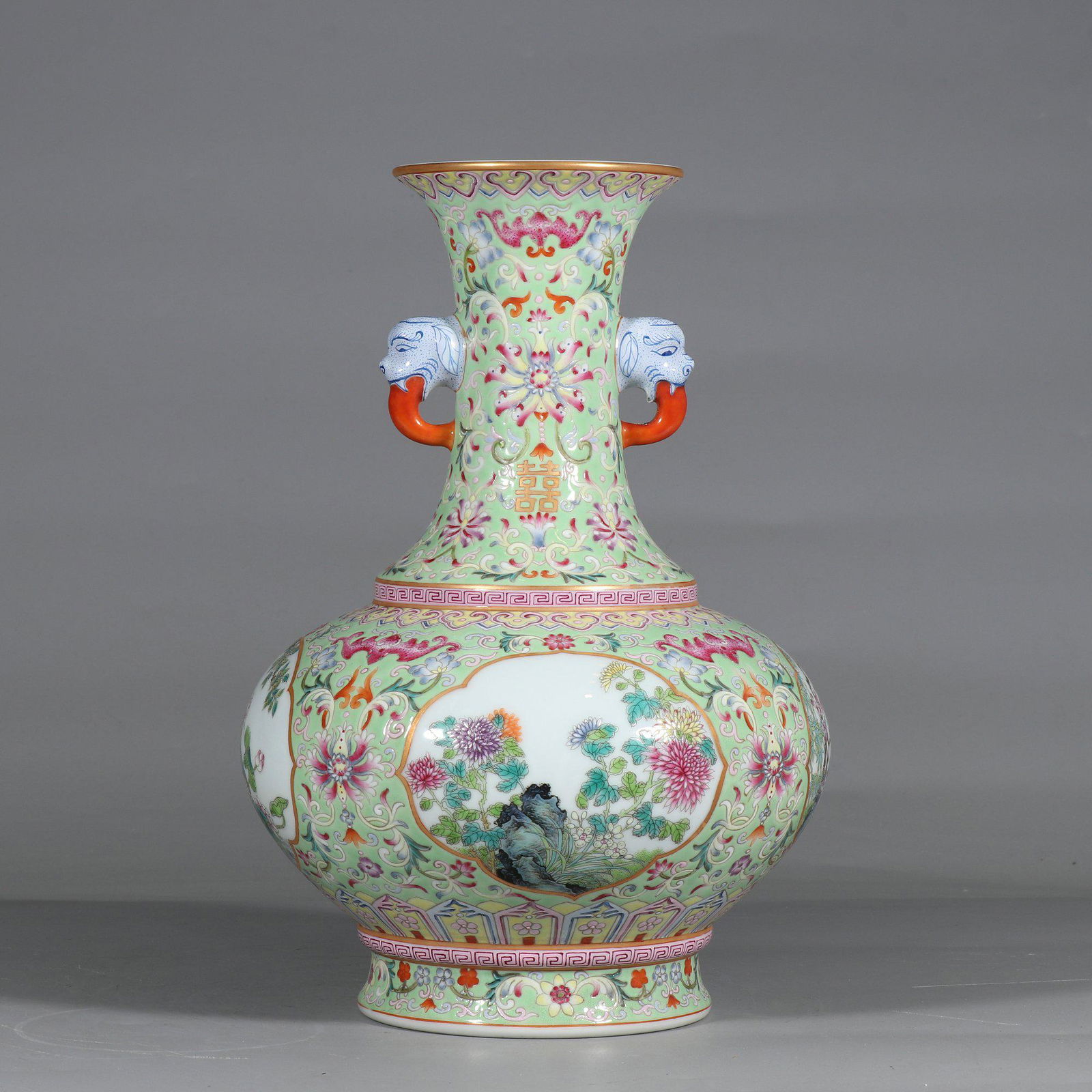 SoldQing Dynasty pastel flower pattern double ear bottleHeight: 31cm, width: 19cm, weight: 1897 GSee Sold Price