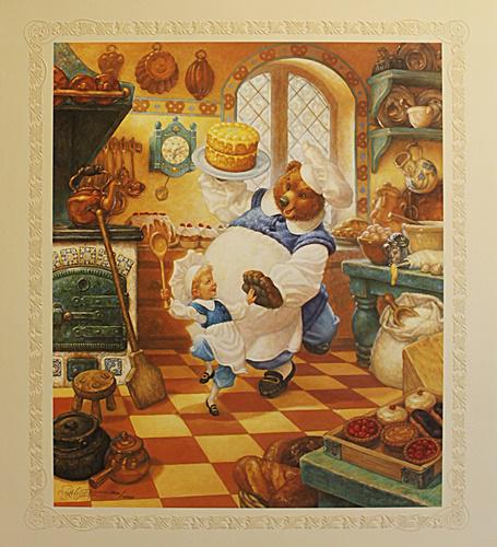 SoldScott Gustafson's "Pat A Cake" and Humpty Dumpty"Scott Gustafson's "Pat A Cake" and Humpty Dumpty" limited edition prints, signed and numbered 2906/4000 and 1674/3500. "Pat A Cake" is of a bear and a child baking in the kitchen. "Humpty Dumpty" is oSee Sold Price