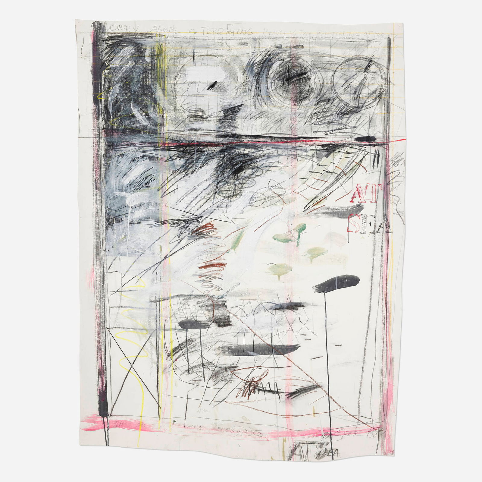 SoldPat Steir (b. 1940): Black DrawingPat Steir (b. 1940): Black Drawing Mixed media on paper, 1977, unsigned, titled and dated on the reverse. 26 x 39 1/2 in. (sheet), 28 3/4 x 42 3/4 in. (frame). Exhibited: Helen Foresman Spencer MuseumSee Sold Price