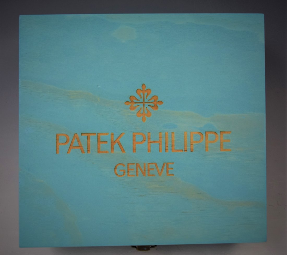 SoldPatek Philippe wooden watch boxPatek Philippe wooden watch box The Patek Philippe wooden watch box, measures approximately 9 1/2 X 6 X 4 inches, with Patek Philippe cloth cover, outer Patek Philippe box and tag, accompanied by a PaSee Sold Price