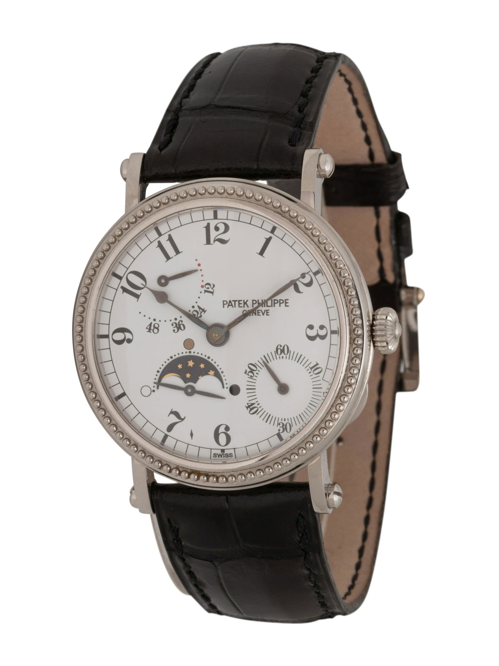 SoldPatek Philippe Automatic Moon Phase Men’s Watch SwissNOTICE ( THIS IS A CLONE PATEK PHILIPPE WATCH ) THE WATCH LOOKS AND WORKS GREAT LOOKS GREAT IN PERSON.Please view all photos as they are part of the description and condition of this Item, Feel free tSee Sold Price