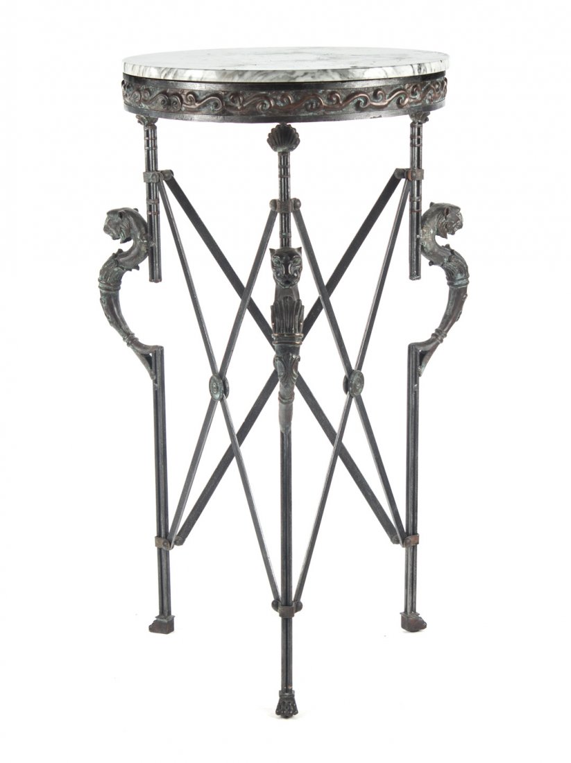 Patinated bronze and marble side table