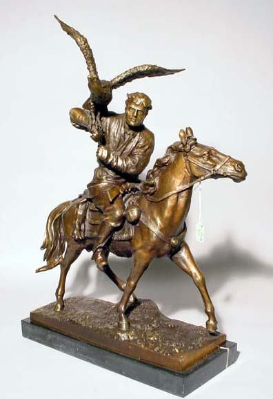 Hunter on Horseback with Eagle Bronze Sculpture by E. Nahcepe – 21" x 21"Weatherham Estate Treasures4(220)$1,100Mar 02, 2026