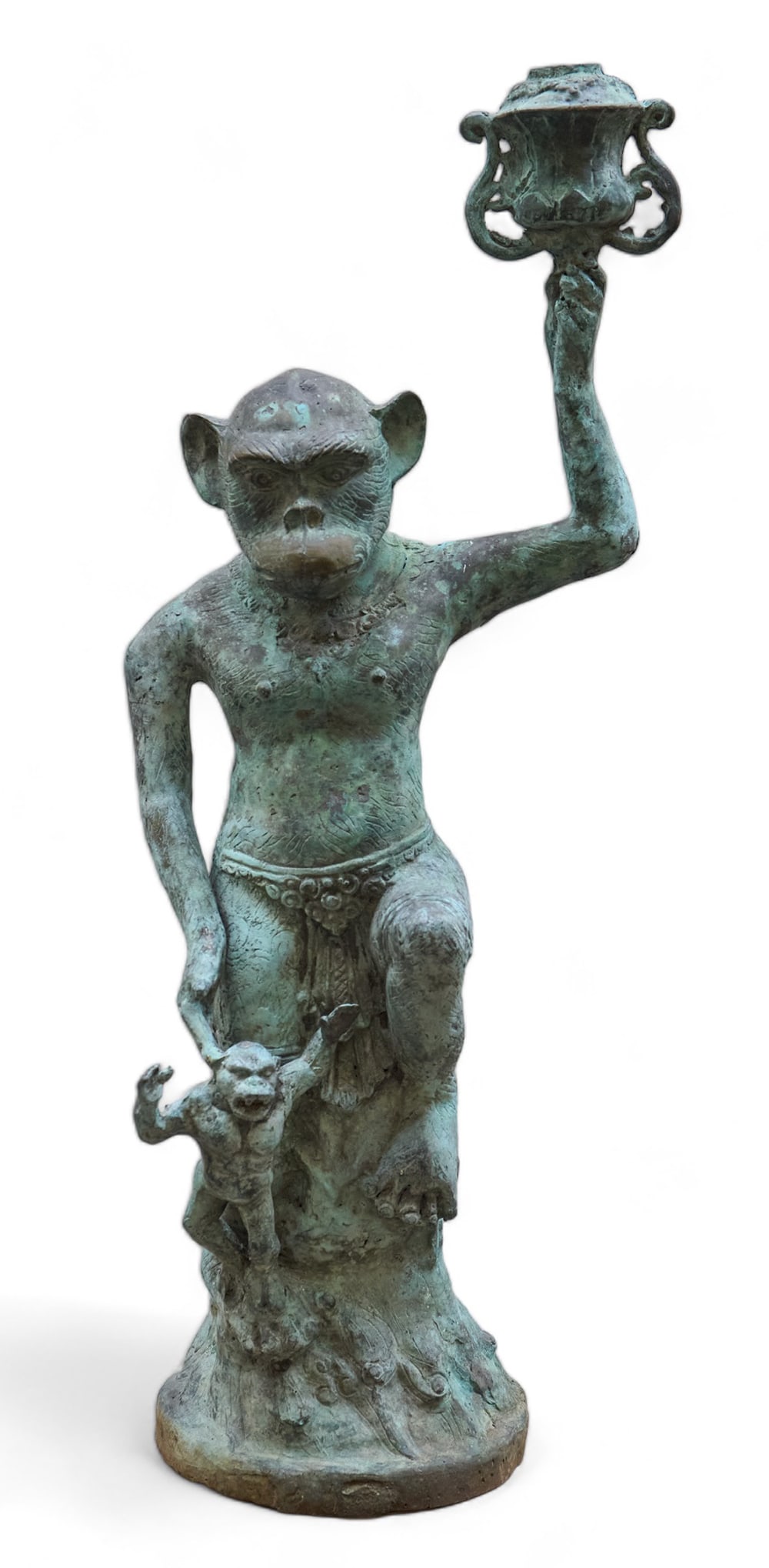 Patinated Bronze Monkey Statue Candelabra.