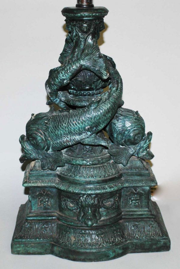 Patinated bronze table lamp cast as Koi