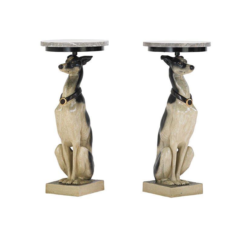 PATINATED METAL WHIPPET FORM SIDE TABLES