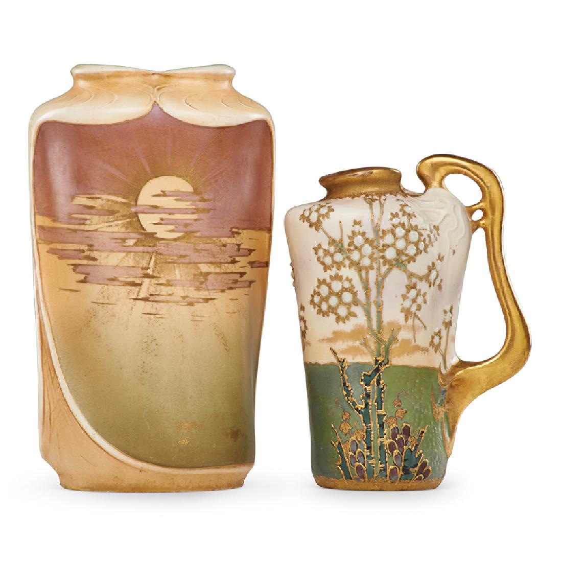 Lot of 2 Fine Antique Pottery Vases2 days LeftEstate Lot of 2 Austrian Amphora Turn Teplitz RSTK Vases & 1 Austrian Manufactured VaseMar 15, 2026Lot of (3) Nemadji Art Pottery VesselsMar 15, 2026Lot of 2 Japanese Cloisonne Enamel Vessels6 days LeftIvan Weiss for Royal Copenhagen, two faience vases.Pair of Antique Japanese Kutani Porcelain Bottle Vases, Meiji PeriodA Pair of Chinese Crackle Glazed Baluster VasesFeb 26, 2026Pair of Antique English Porcelain Floral Vases – c.1860Two Antique Earthenware Vessels, One Incised "APK"Feb 27, 2026Mark Hewitt (NC, b. 1955), Two Stoneware Pottery Vases3 days Left2 Chinese porcelain vases.Feb 24, 2026Two Roseville Primrose vasesFeb 25, 2026PAIR CHINESE PORCELAIN PEACH BLOSSUM VASE LAMPSFeb 24, 20262 Nakayama, Glasser Art Pottery Vases & Chinese VaseFeb 24, 2026Studio Art Pottery Bottle Vases, PairMar 12, 2026Heiner Balzar Glazed Stoneware Bottle Vases, 2Feb 26, 2026