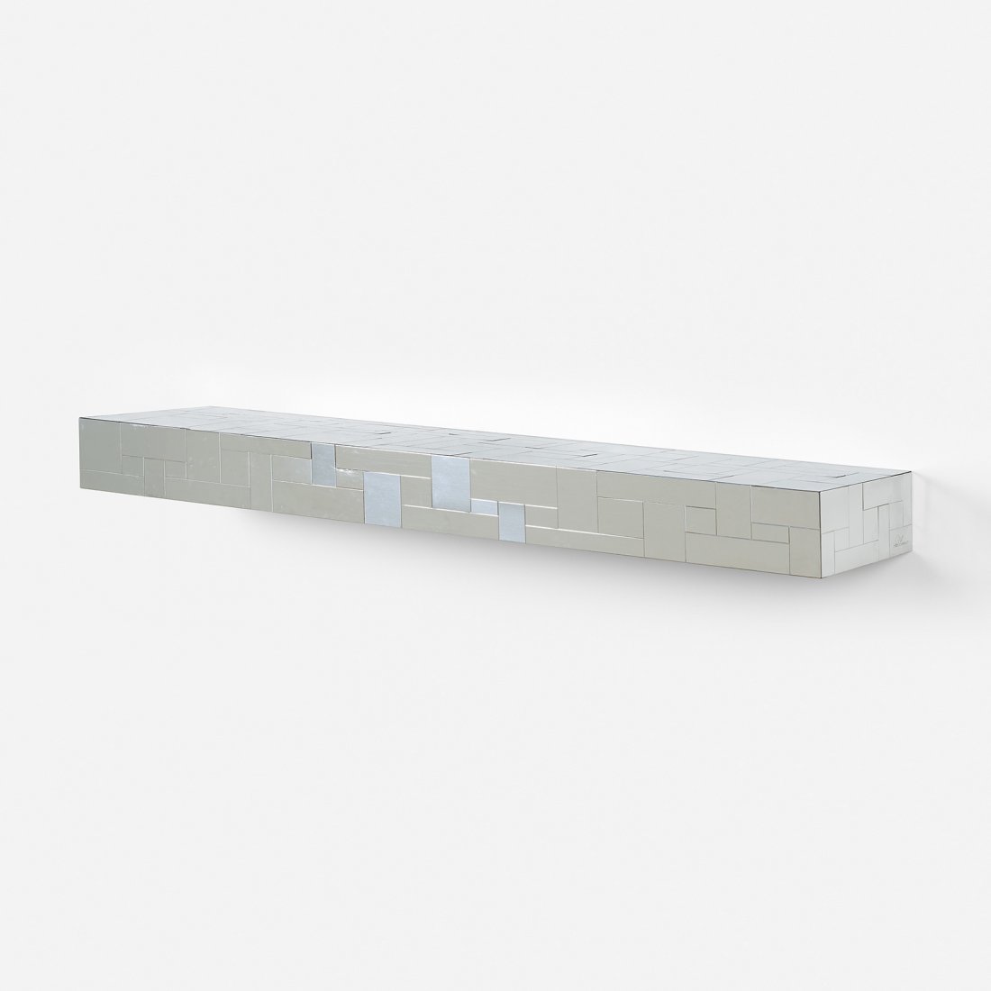 Paul Evans Style, Patchwork Chrome, Mirrored Wall Shelf, USA, 1980s