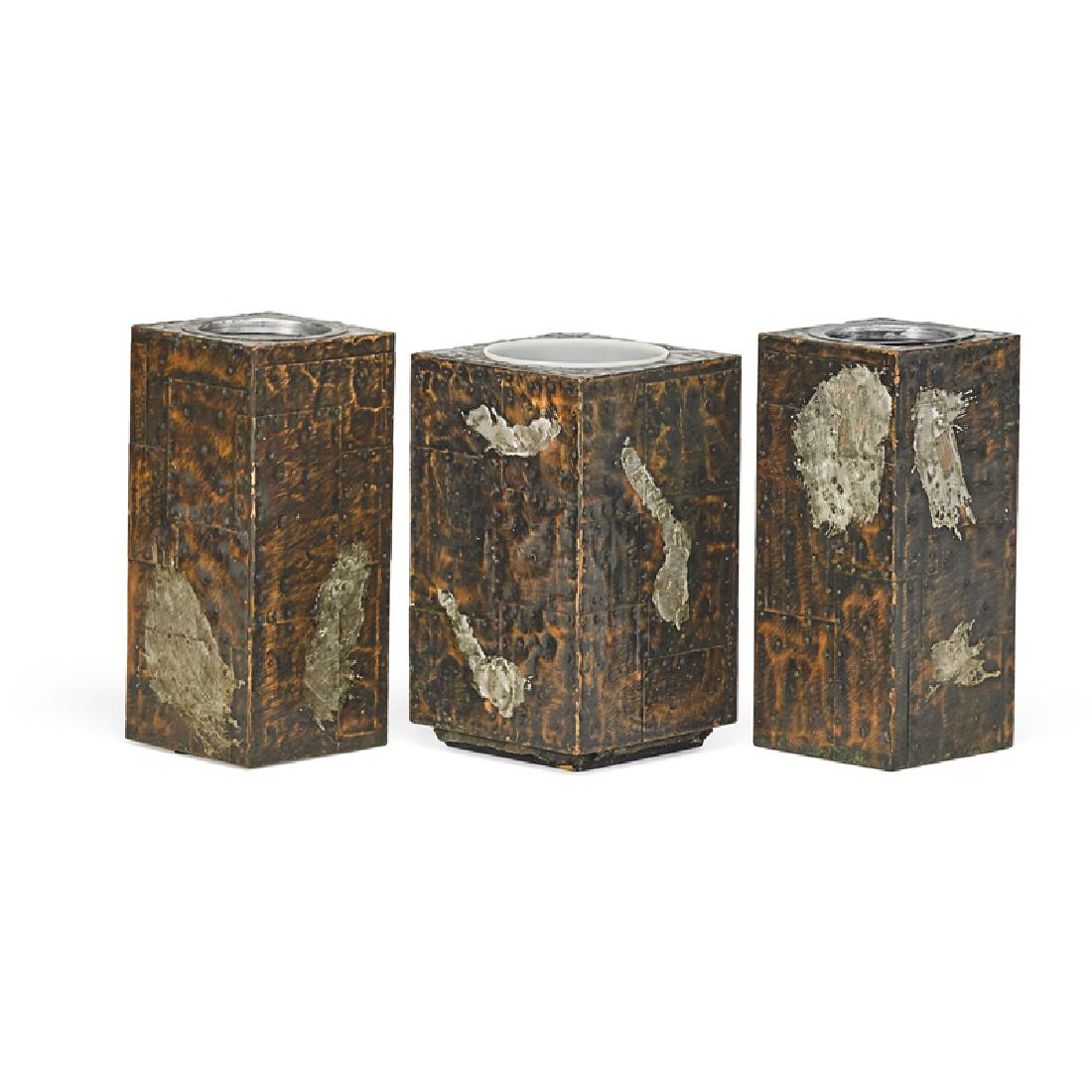 PAUL EVANS Patchwork planter and two ashtray stand