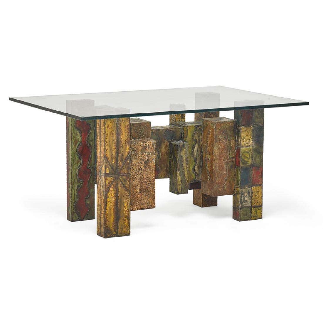 Maitland Smith Fossilized Coral and Abalone Shell Dining Table1 day LeftPaul Evans, Sculpted Bronze dining table, model PE-105Feb 26, 2026Paul Evans, Sculpted Bronze coffee table, model PE-131Feb 26, 2026A Modern glass and chromed X-base dining table the Milo Baughman style5 days LeftA Magni Design weathered bronze and glass Mesa dining table, modernFeb 25, 2026Paul Evans Signed Brutalist Iron Coffee Table with Glass TopFeb 27, 2026Vintage Pierre Deux French Brass Steel Glass Dining Table 69.5 x 41.625Mar 01, 2026Paolo Piva for B & B Italia, "Anthos" dining table2 days LeftLuigi Massoni Attr. Oval Glass Top Dining TableMar 19, 2026Sculptural Brass & Glass Dining Table with Blackened Accents, Organic Mid-Century Modern StyleFeb 27, 2026Andersen Dining Table BaseFeb 25, 2026ITALIAN BRONZE AND GLASS DINING TABLE WITH CIRCULAR MOTIF C 1965.Feb 26, 2026BERNHARDT 'ARCADIA' SILVER-LEAFED ACRYLIC-TOP STEEL DINING TABLE3 days LeftCharles Hollis Jones Silver Box Coffee Table with Glass Top3 days LeftChic Hollywood Regency Glass Top Coffee Table 1970s 1980sMar 03, 2026Silas Seandel Brutalist Coffee Table Polychrome Brass Glass Top5 days Left