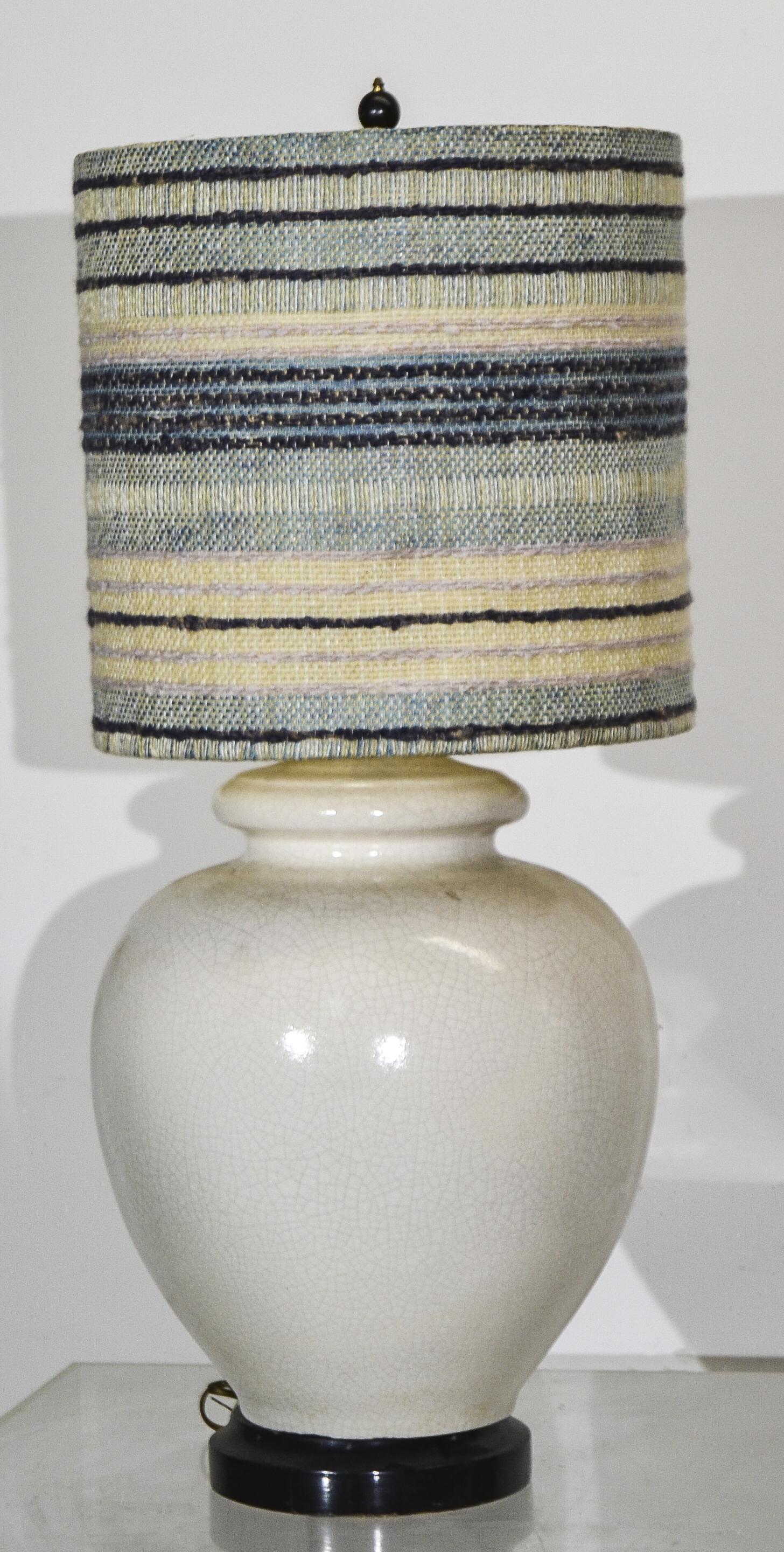 SoldPaul Laszlo, Table lampPaul Laszlo Table lamp Laszlo, Inc.Hungary/USA, c. 1950glazed ceramic, bronze-plated steel, yarn, thread, wool 33.5 h x 16.25 dia in (85 x 41 cm) Provenance: Bullocks WiSee Sold Price