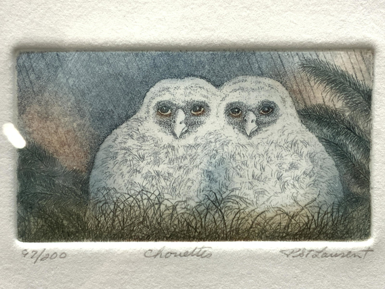 PAULE ST LAURENT Signed Owlets Block Engraving