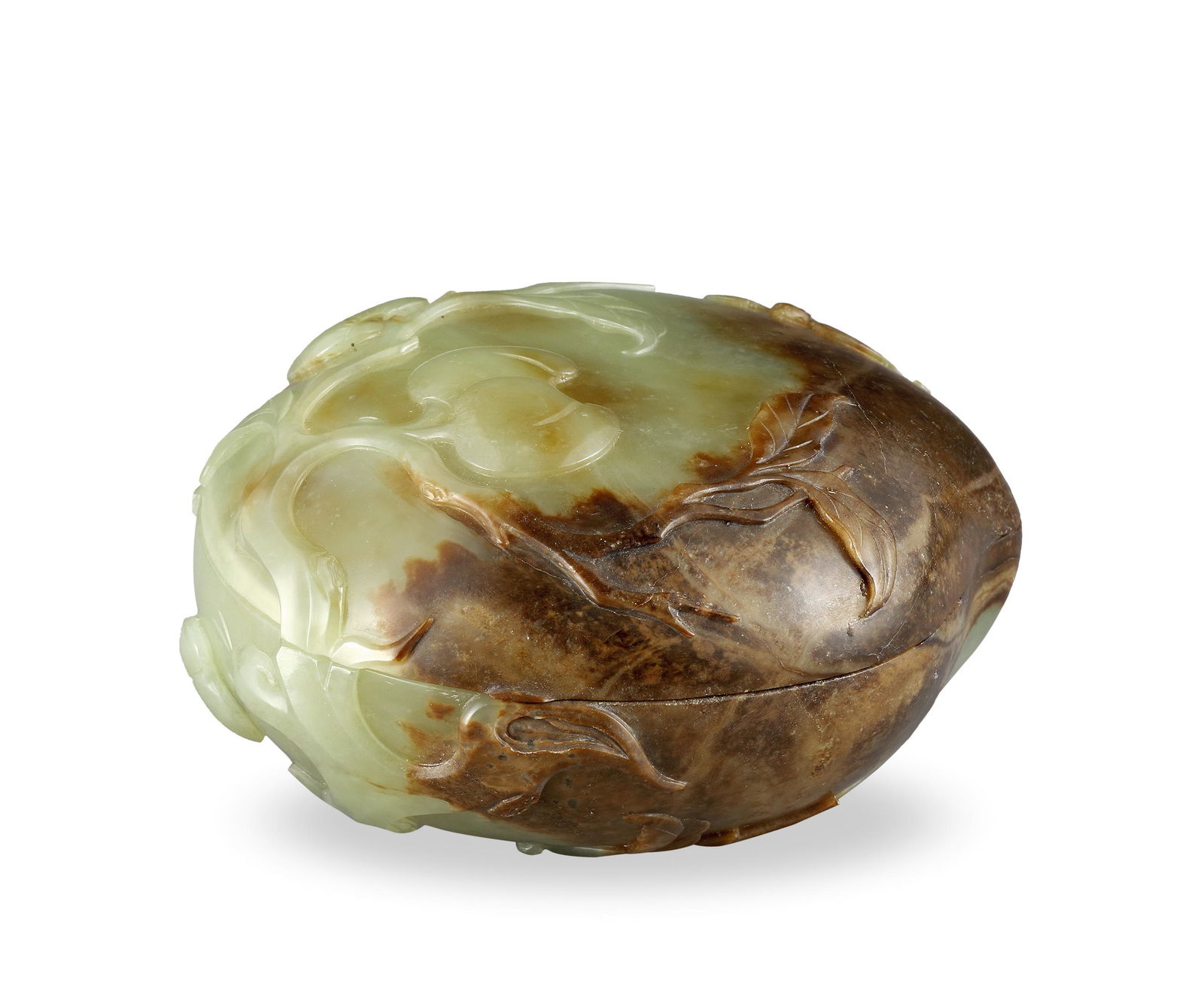 PEACH SHAPED YELLOW JADE BOX WITH COVER 黃玉