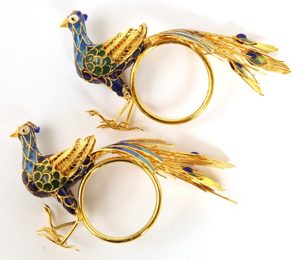 Lot of Victorian Gold Plated Bangle BraceletsFeb 21, 2026Lot of 16 Metal Napkin Rings, Angels, Stars & CloisonneFeb 21, 2026PAIR OF CHINESE ROOSTER PORCELAIN STATUESFeb 24, 2026Pair of Peacock Dressed Dancer FigurinesFeb 26, 2026Matched Pair Brass and Crystal Peacock Electric Sconces Circa 1970sChinese CloisonneEnamel with Brass Pair of pheasant figurine StatuetteMar 01, 2026TWO PERSIAN STEEL PEACOCKS WITH GOLD AND SILVER INLAY EARLY 19TH CENTURYFeb 15, 202618K GOLD, DIAMOND, AND MULTI-GEM BIRD CLIPS/BROOCHPAIR OF DECORATIVE PEACOCK MOTIF PLASTIC, GLITTER & GLASS WALL SCONCES6 hrs LeftTraditional Peacock Sterling Silver EarringsFeb 24, 20261970s Collection of Brass Owl Napkin Rings- Set of 4A Fine Pair Of Cloisonne DucksMar 11, 202616" Decorative Peacock with Tealight Candle Holders4 days LeftCast Brass Pheasant Figures, PairMar 26, 2026Vintage 14k Yellow Gold Enamel Golden Pheasant Bird Brooch6 days LeftGold Gilded Brass Fighting Rooster Sculptures3 days Left