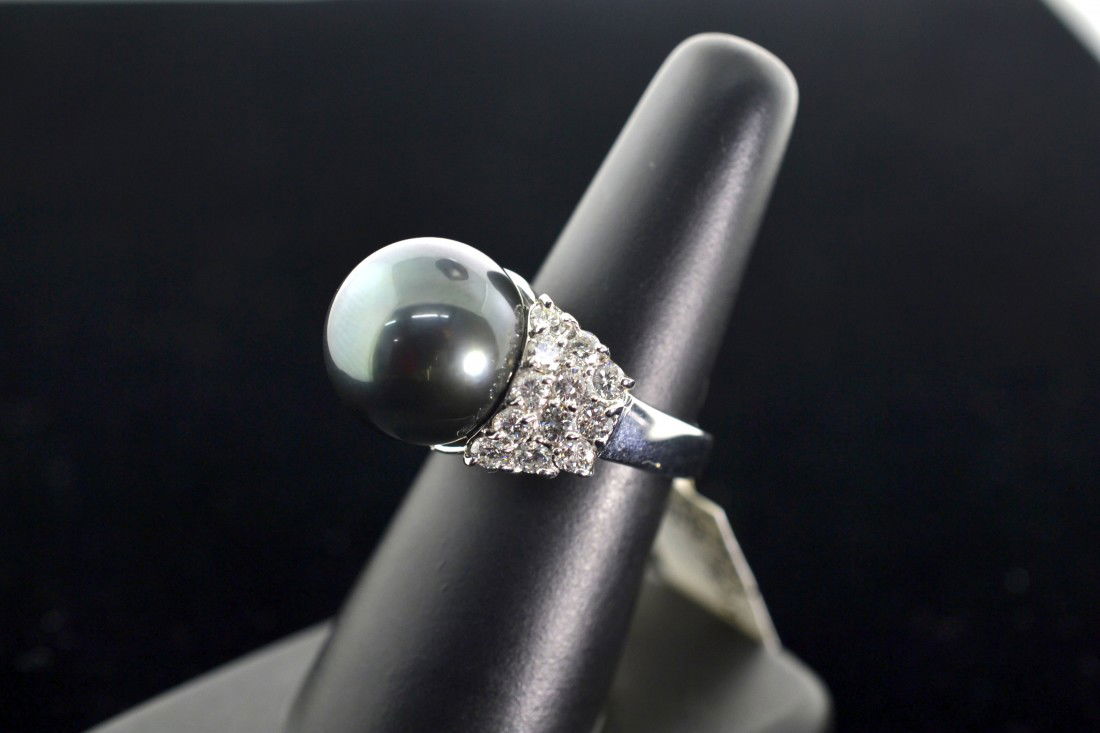 18K White Gold Ladies Ring with 12.42mm Tahitian Pearl and 1.35ct tw Adjacent DiamondsRiverside Galleries4.4(202)$503 days Left