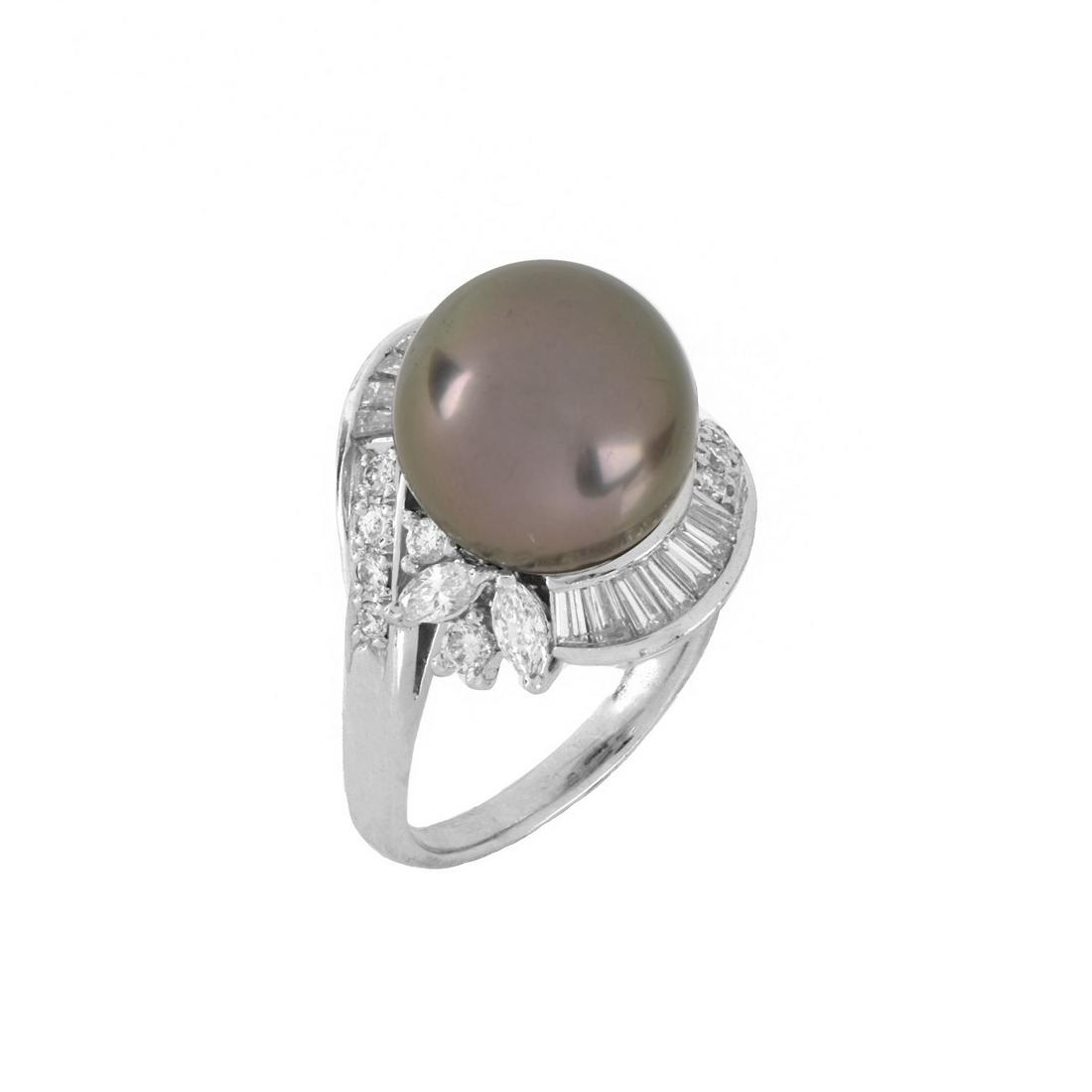 Sold14.8mm Tahitian Pearl, 1.40ctw Diamond Platinum Ring14.8mm Tahitian Pearl, 1.40ctw SI1-SI2/G-H Diamond Solid Platinum Ring - This beautiful ring was finely crafted of solid platinum and boasts a 14.8mm Tahitian pearl. The pearl has a perfect sphericalSee Sold Price