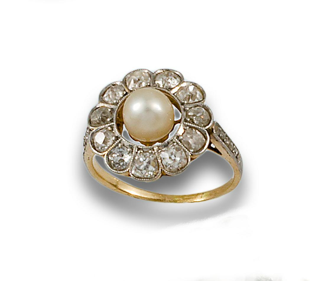 Diamond and Natural Pearl Ring in 18K Yellow Gold and Platinum AntiqueBidhaus4.2(840)$100Mar 06, 2026