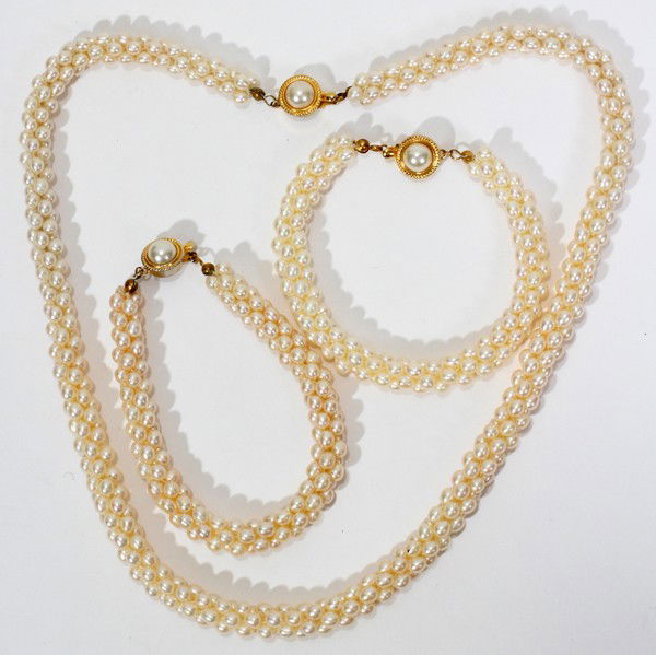 PEARL NECKLACE, TWO BRACELETS, 3 PCS.,