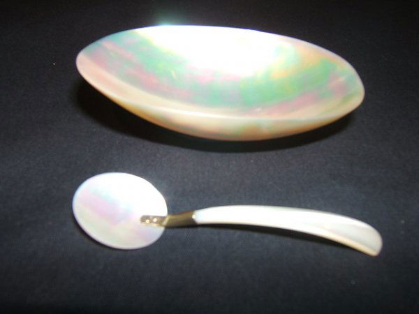 SoldMOTHER OF PEARL OYSTER SHELL CAVIAR DISH & SPOONVINTAGE MOTHER OF PEARL OYSTER SHELL CAVIAR DISH AND SPOON1" X 8" X 5" APPROX-VERY GOOD CONDITION, WEAR CONSISTENT WITH AGE AND USE-DP91321See Sold Price