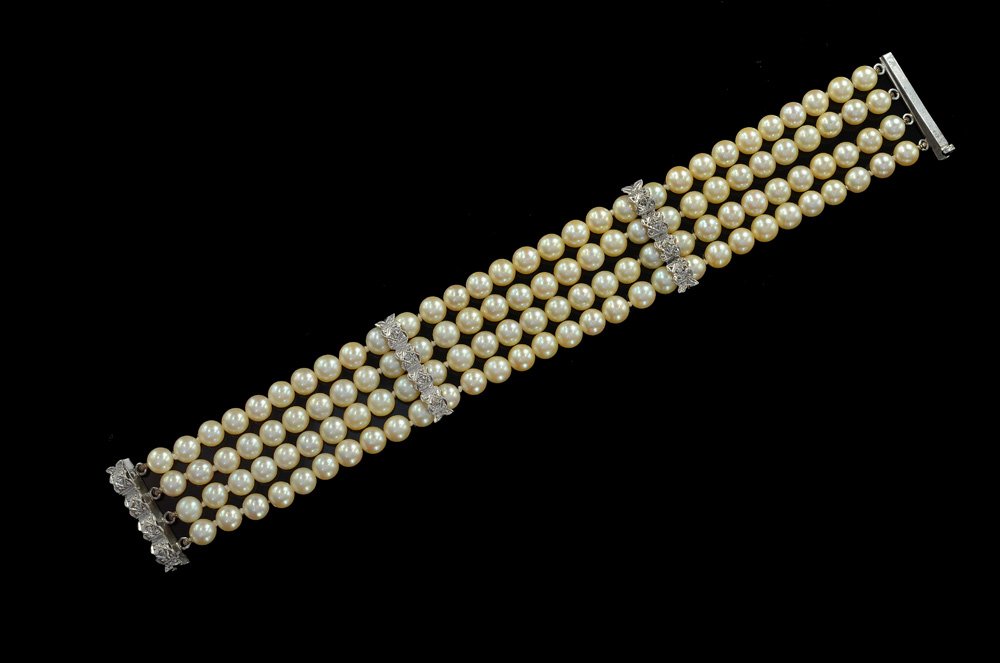 Triple Strand Akoya Pearl Diamond Bracelet in 14k Yellow Gold by MikimotoMynt Auctions4.5(851)$1002 days Left