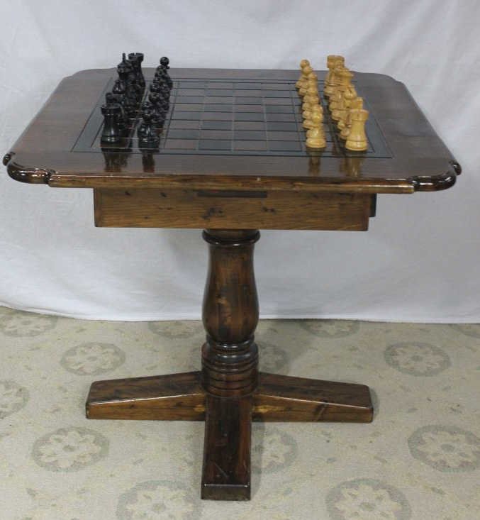 Pedestal Chess Gaming Table With Chess Pieces