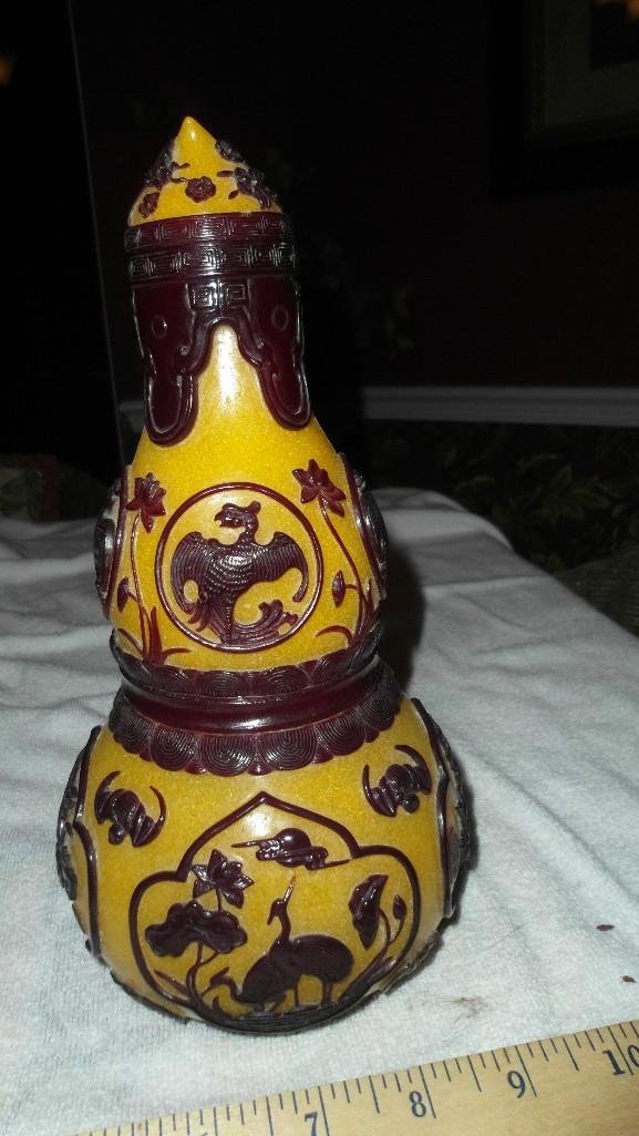 Peking glass yellow vase