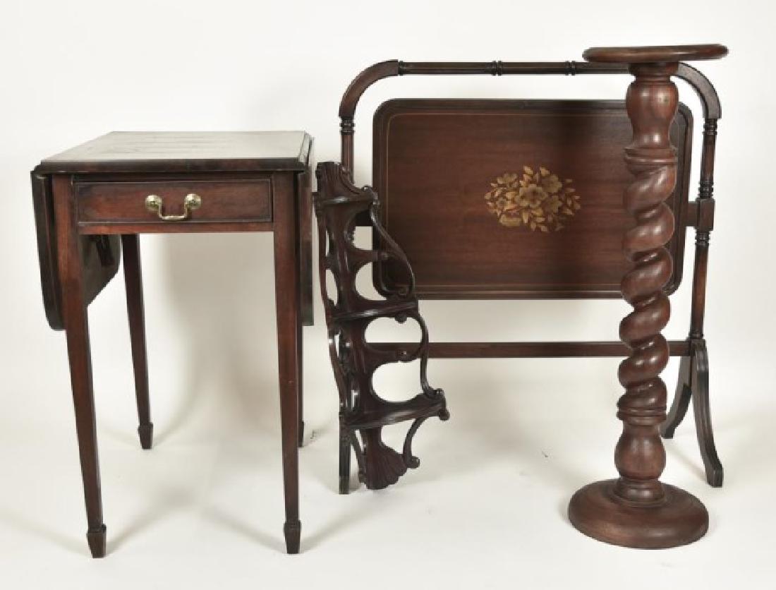 Queen Anne Style Lowboy / Server & Display VitrineFeb 28, 2026EDWARDIAN ARMCHAIR AND LOUIS XV STYLE TABLEMar 07, 2026Federal Style Console Table and Louis XV Style Side Table6 days LeftVintage Chippendale Tilt Top Table by Baker Furniture - PairPedestal Table and Low Table with Drawer6 days LeftONE DRAWER WORKTABLE WITH TWO CANDLE STANDSMar 06, 2026Mahogany Console Table with Turned Legs and Stretcher BaseMar 01, 2026Federal Mahogany Pembroke Table5 days LeftLATE FEDERAL DROP LEAF TABLE WITH A MAHOGANY GAME TABLEMar 06, 2026SPINDLE GALLERY WOOD WRITING DESK WITH TURNED LEGS1 day LeftEclectic Style Inlaid Mahogany Side Table6 days LeftFederal Mahogany Wash StandMar 07, 2026Federal Demi-Lune Card Table with Swag MotifMar 07, 2026Five Piece Furnishing Group1 day LeftA mahogany fold-over card table, and another 19th century,Southern Cherry One-Drawer Work Table with Spiral Turned Legs, ca.1840-60Mar 07, 2026