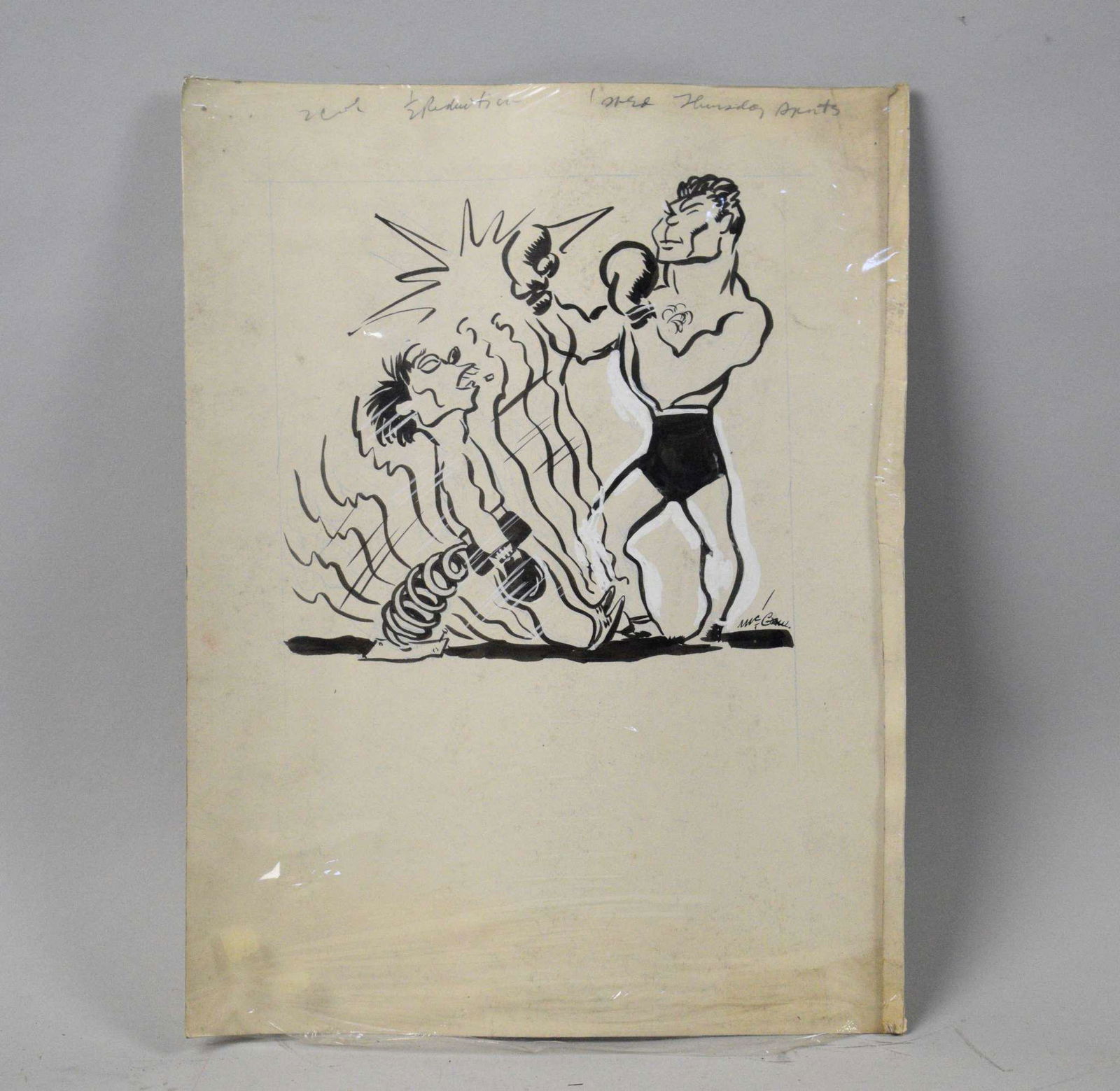 PEN DRAWING BOXING CARTOON SIGNED "MCGRAW"