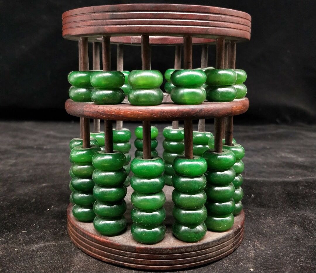 Rosewood and jade bead inlaid round abacus-shaped pen holder ornamentGenki Forest Auctions$1,00011 hrs Left