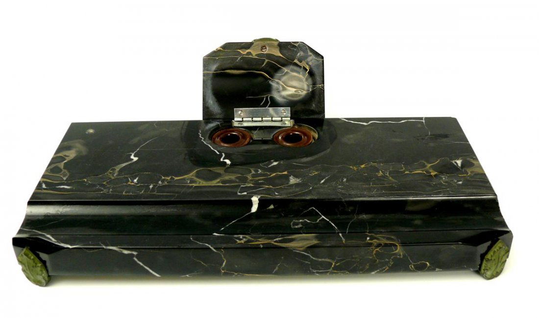 Continental Art Deco Bronze Black Portor Marble Desk Set