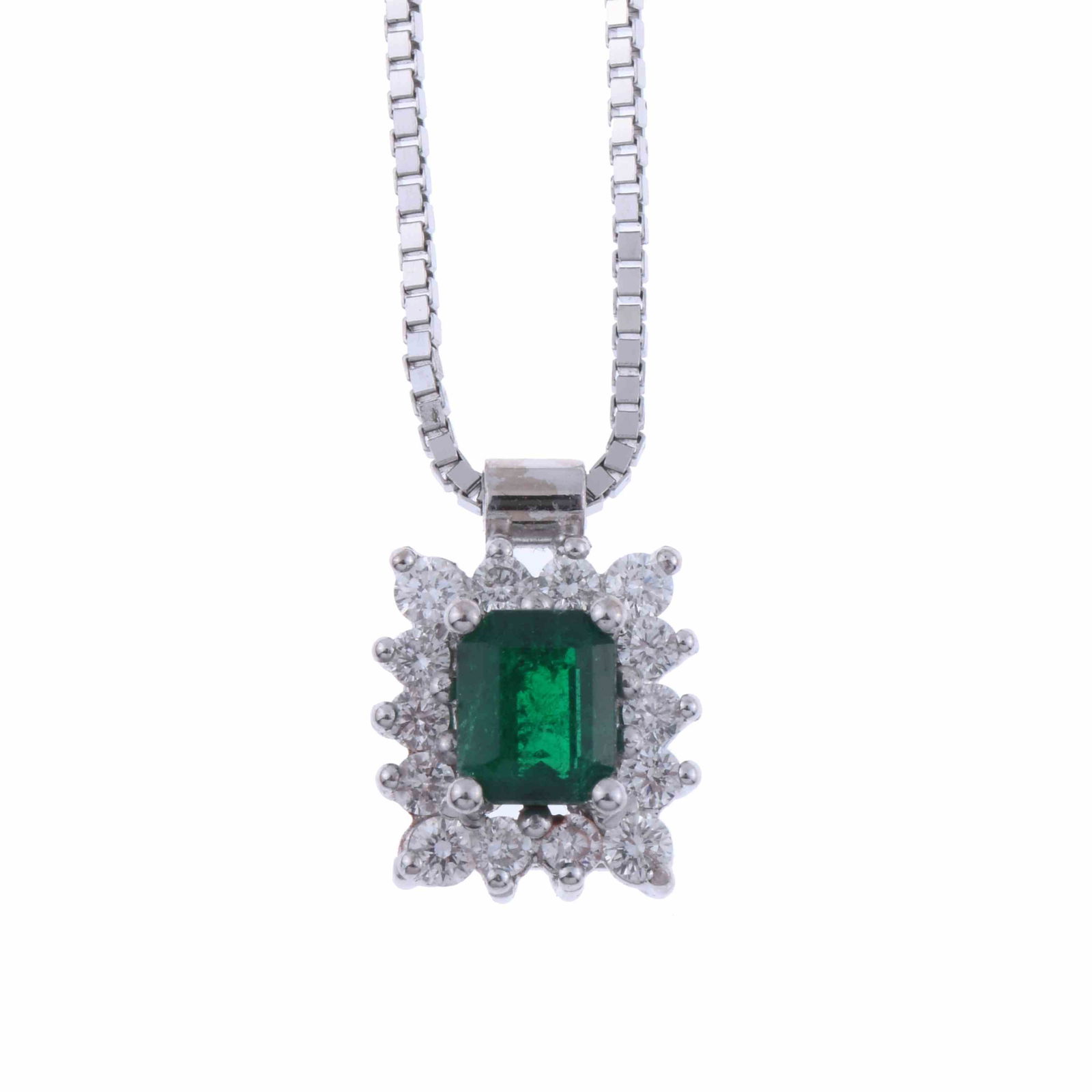 Magnificent necklace in 18k white gold, with a large emerald and brilliant-cut diamondsPari Auktionen€2,400Apr 04, 2026