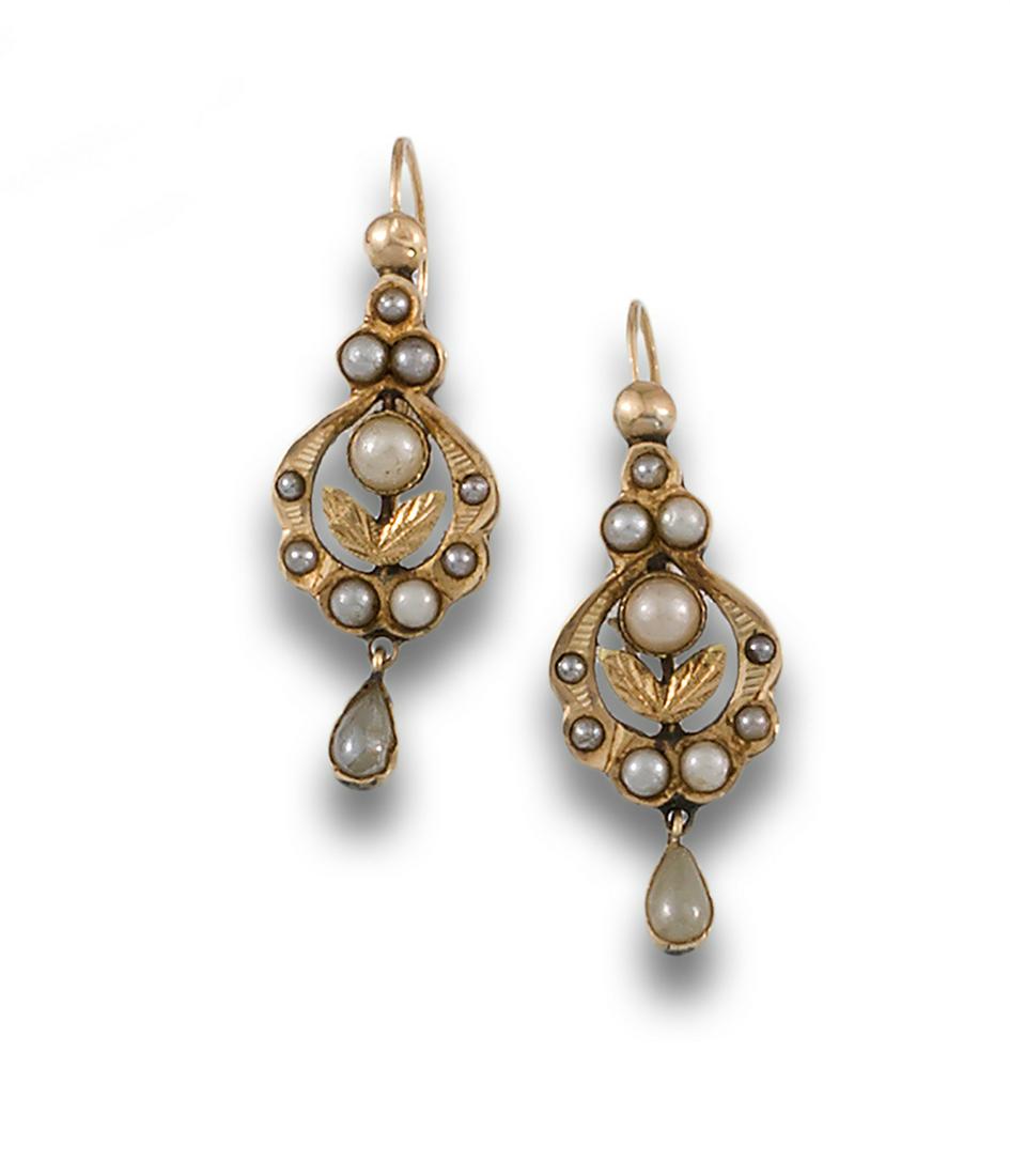 PENDIENTES S. XIX ORO PERLAS