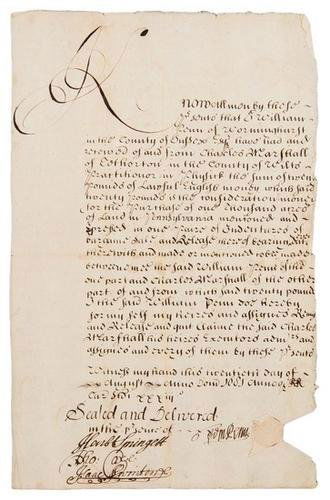 PENN, William. Manuscript document signed and seal