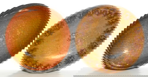 PENNSYLVANIA REDWARE PIE PLATES, TWO, DIA 7 3/4