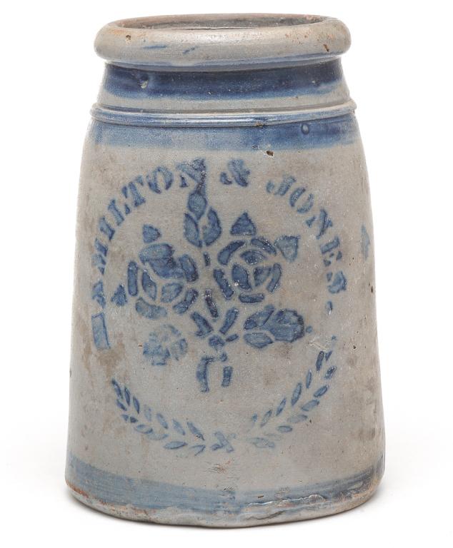 Hamilton & Jones (Greensboro, Pennsylvania)Feb 25, 2026JAS. HAMILTON & CO. (GREENSBORO, PENNSYLVANIA) COBALT-DECORATED STONEWARE TWO-GALLON JAR.3 days LeftHamilton & Jones Greensboro PA 1/2 Gal. Cobalt Blue Decorated Stoneware Canning Crock JarMar 02, 2026WHITES, UTICA,NY STONEWARE BUTTER CHURNFeb 26, 2026ANTIQUE 18TH CENTURY BLUE AND WHITE FAIENCE JAR5 days Left1880's Blue Decorated Stoneware Wax Sealer Jar tapered to top with 4 stripes, 4"x7"Feb 24, 20262 handled blue decorated stoneware jar with thumbprint design, incised #3 near the applied handle,Feb 24, 2026Bedford, PA Cobalt Decorated Stoneware Advertising Merchant JarMar 01, 2026Westerwald-style Salt-Glazed Stoneware Crock with Cobalt Blue DecorationFeb 24, 2026Five 19th Century Pennsylvania Stoneware Crocks and JugMar 01, 2026Antique Lewis Fischer Stoneware Jug, Jersey CityFeb 27, 2026R. T. Williams blue decorated stoneware jar 2 gallon, New Geneva, PA, 8"X9"Feb 24, 20261880's Blue Decorated Stoneware Wax Sealer Jar with 3 stripes, 4"x6"Feb 24, 2026Stoneware Blue Decorated Jar, 1 gallon jar with nice glaze finish, 5"X9"Feb 24, 2026Rare smaller size blue decorated 2 handled stoneware jar, possibly Utica ca 1860 4"X6"Feb 24, 2026German Salt Glazed Cobalt Blue Decorated Handled 2 L Stoneware Pitcher of the Westerwald RegionMar 16, 2026