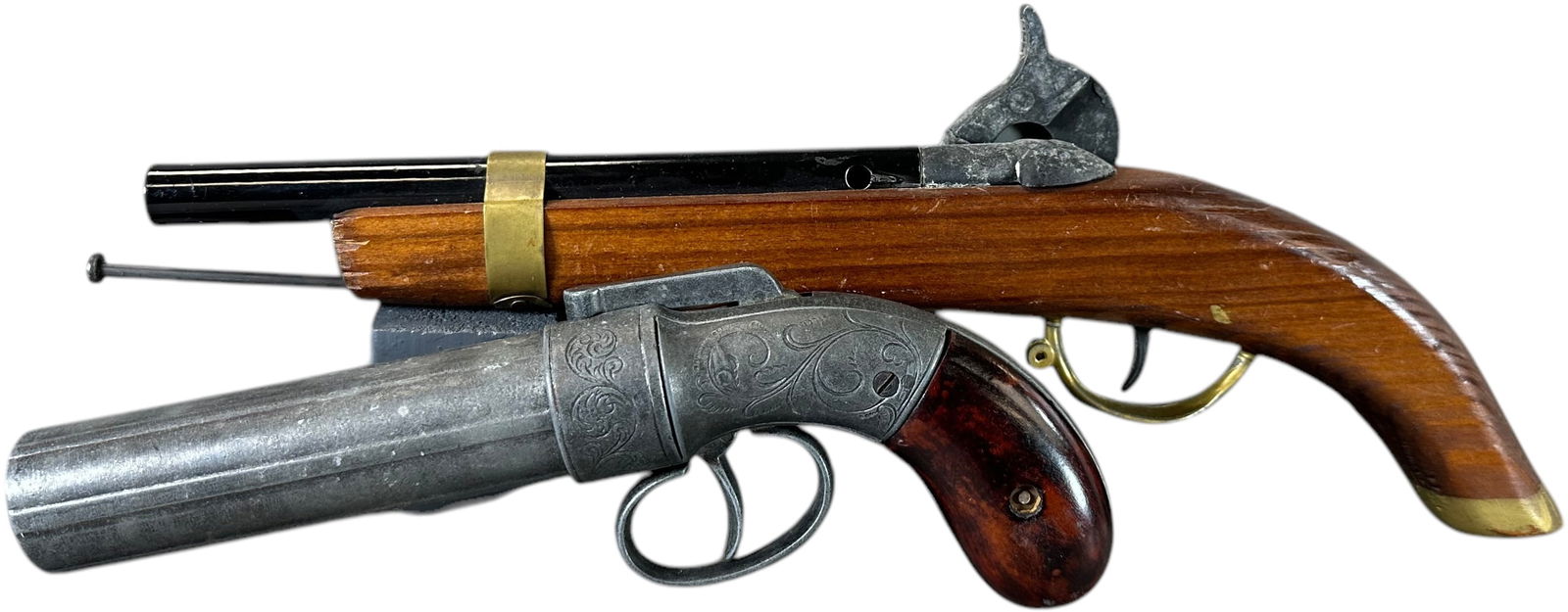PEPPERBOX & FLINTLOCK OLD TIME CAP PISTOLS