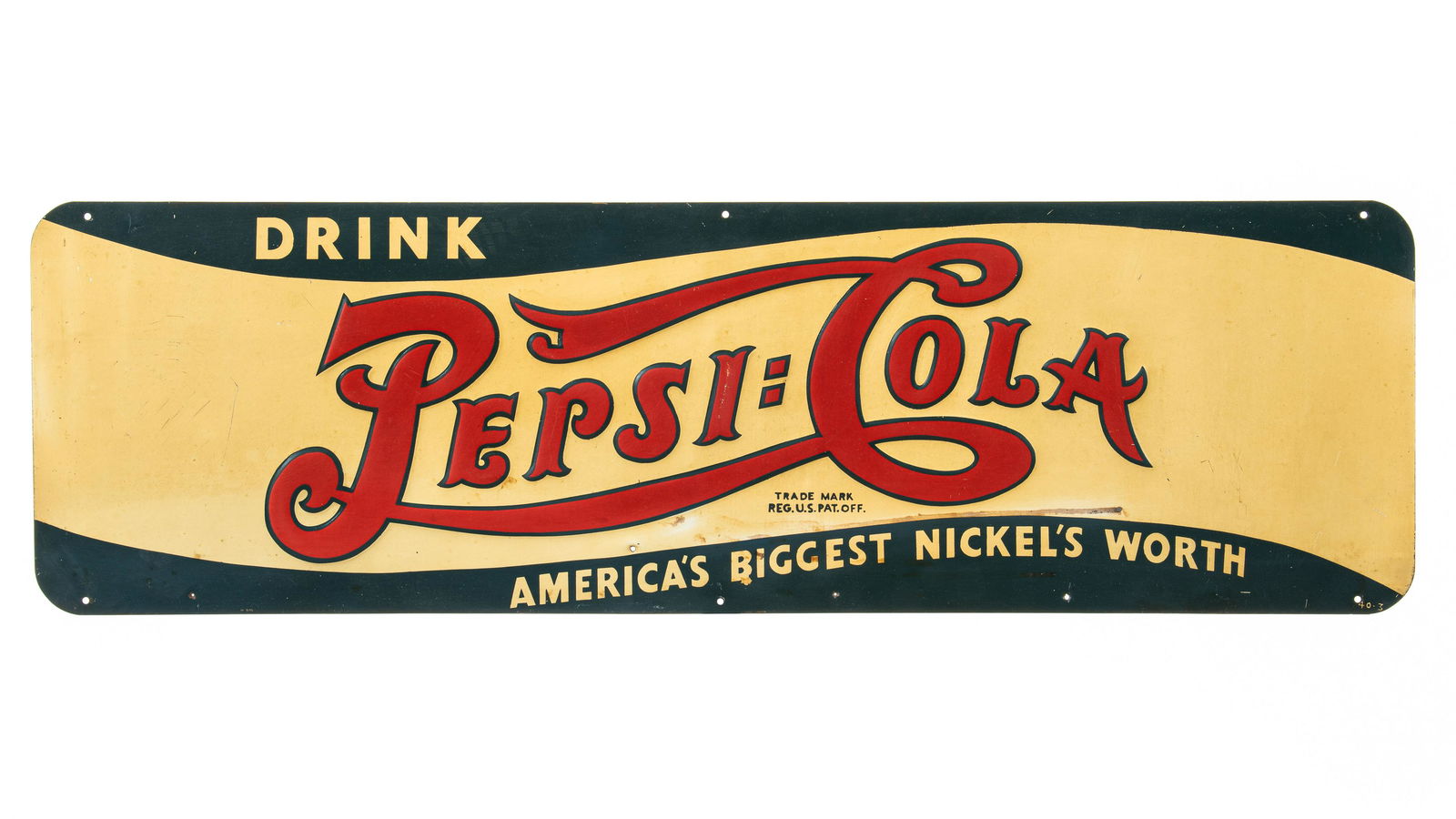 (2) Drink Pepsi-Cola Bottle Cap & Tin Signs LotMar 14, 2026Pepsi Cola Double Dot Bottle Topper Sign and Carboard Mirror SignMar 20, 2026Drink Pepsi Cola Iced 5 Cent Single Sided Tin SignMar 21, 2026Take Home A Carton Of Pepsi Cola Single Sided Tin SignMar 21, 20261950 Pepsi Cola More Bounce To The Ounce Single Sided Porcelain SignMar 21, 20261950 Pepsi Cola More Bounce To The Ounce Single Sided Porcelain SignMar 21, 2026Drink Coca Cola Delicious And Refreshing Single Sided Tin SignMar 21, 2026Drink Coca Cola Delicious And Refreshing Single Sided Tin SignMar 20, 20261940 Pepsi Cola 5 Cent Bigger Better Worth A Dime Costs A Nickel Single Sided Tin SignMar 20, 2026Pepsi Advertising Tin Sign 22.5" by 32"Mar 14, 20261950 Pepsi Cola More Bounce To The Ounce Single Sided Porcelain SignMar 21, 2026Printed Wood Sign "Drink PEPSI-COLA Delicious Heathful", "Sold Here 5 Cents" 49 in. x 13 in.Mar 15, 2026Pepsi-Cola Door Kick Sign6 days Left1941 Pepsi Cola 5 Cent Bigger Better Embossed Single Sided Tin SignMar 21, 2026Coca-Cola Fountain Service Porcelain SignMar 25, 2026Drink Ice Cold Coca Cola in Bottles SST SignMar 20, 2026