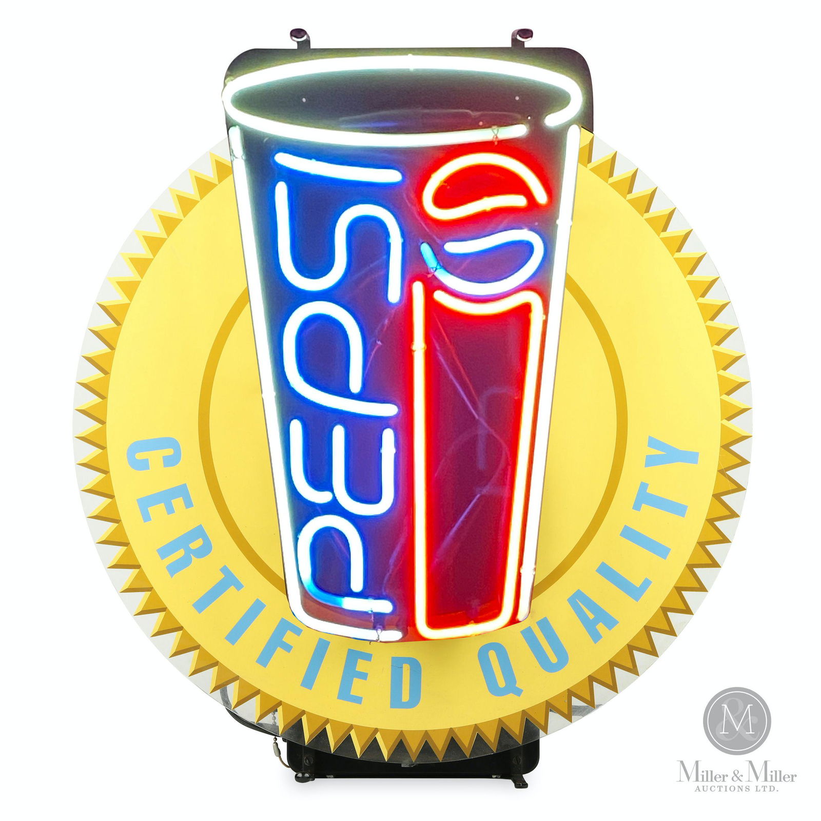 (2) Drink Pepsi-Cola Bottle Cap & Tin Signs LotMar 14, 2026Mason's Root Beer neon signMar 28, 2026Pepsi Cola Thermometer and Plastic SignMar 20, 2026Pepsi License To Chill Menu Board and Pepsi Mirror LightMar 20, 2026Vintage Classic Pepsi Slide Cooler Vending MachinePepsi Cola Lighted Plastic Counter Top Sign With ArrowMar 20, 2026Say Pepsi Please Light Up SignMar 21, 2026Pepsi Cola Embossed Single Sided Porcelain Bottle Cap SignMar 20, 2026Pepsi Cola double bubble lighted clockMar 28, 2026MOBIL GAS Single Sided NEON Advertising SignMar 21, 20261941 Pepsi Cola 5 Cent Bigger Better Embossed Single Sided Tin SignMar 21, 2026Pepsi "Wave" Door Kick SignMar 08, 2026The Beer Port Package Liquor Cold Beer to Go 8' SSP Factory Neon Sign w/ ArrowMar 20, 2026Drink Pepsi Cola More Bounce To The Ounce Light Up Advertising ClockMar 21, 20261940 Pepsi Cola 5 Cent Bigger Better Worth A Dime Costs A Nickel Single Sided Tin SignMar 20, 2026Have A Pepsi Cola Embossed Single Sided Tin SignMar 21, 2026