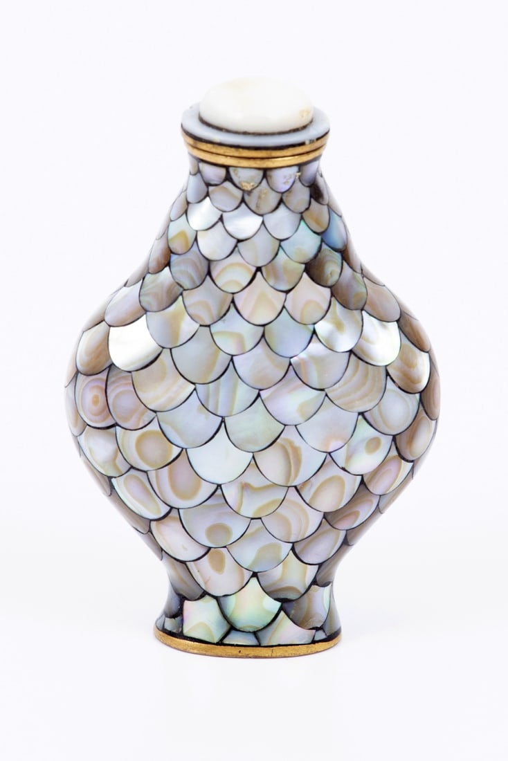 SoldWhite Jade Snuff Bottle w/. Archaistic Decoration, QingWhite jade China, Qing dynasty (1644-1911) Elongated drop shape Very well and wide hollowed body Narrow mouth and straight lip Slightly recessed, oval base with a flat foot rim Both sides with a archaSee Sold Price
