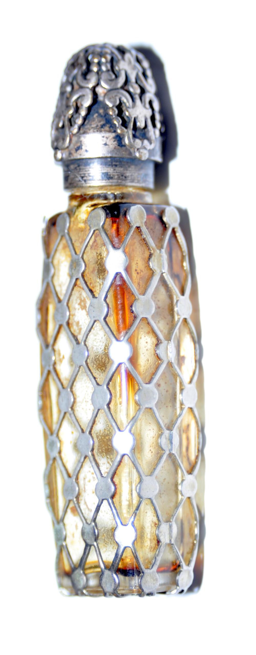 A SILVER OVERLAID GLASS SCENT BOTTLE. 74 grams. 7 cm high.Hannam's Auctioneers Ltd4.3(415)£305 hrs Left