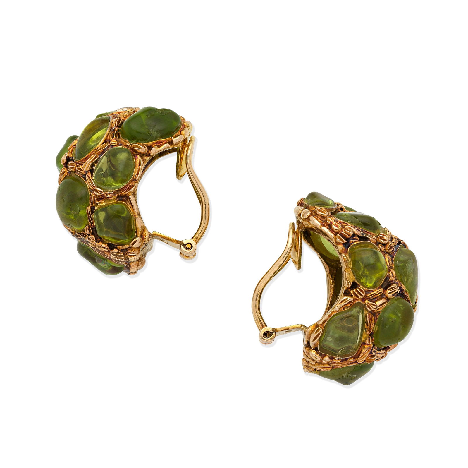 TIFFANY & CO., TOURMALINE, DIAMOND, AND YELLOW GOLD EARRINGS