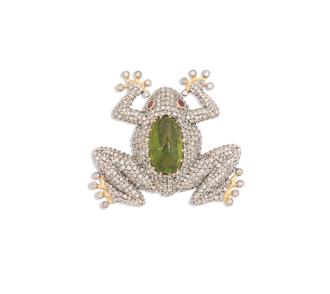 Peridot, Diamond and Ruby Frog Brooch/Pendant