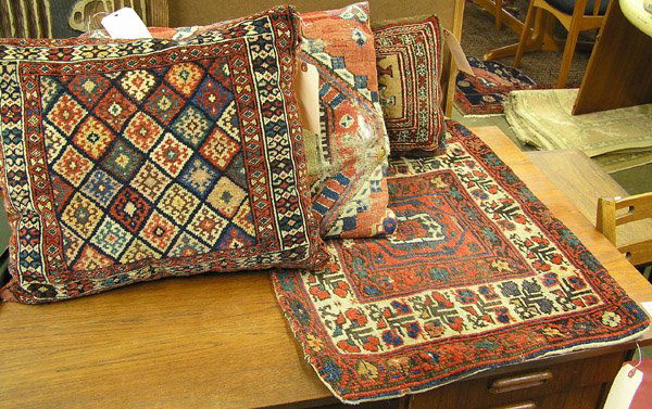 FOUR THROW PILLOWS MADE FROM SOUMAK RUG FRAGMENTS 20th Century Three 1'9" x 1'9" and one 1'4" xEldred's4.8(489)$70(1 bid)6 days Left