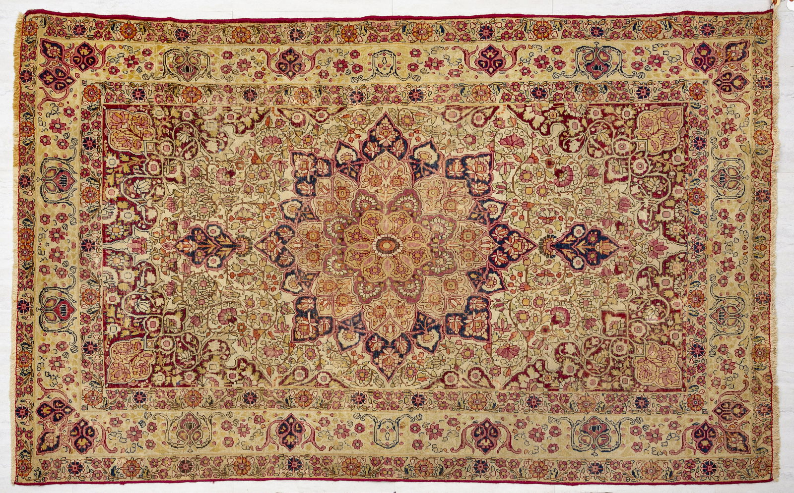 SoldKERMAN PERSIAN WOOL RUG C.1960KERMAN PERSIAN WOOL RUG, C.1960, 11' 6" X 9' 0":Ivory ground with central medallion. Handwoven. For a high resolution photo CLICK HERESee Sold Price