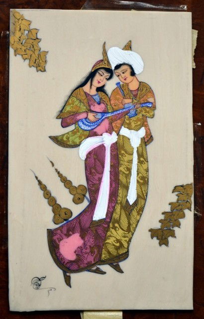 SoldA quality Persian hand painting miniatureA quality Persian hand painting miniature, second half of the 20th century, decorated with high-quality hand-painting in the image of a Persian musician on a iv-ory plaque, signed, framed with passepaSee Sold Price