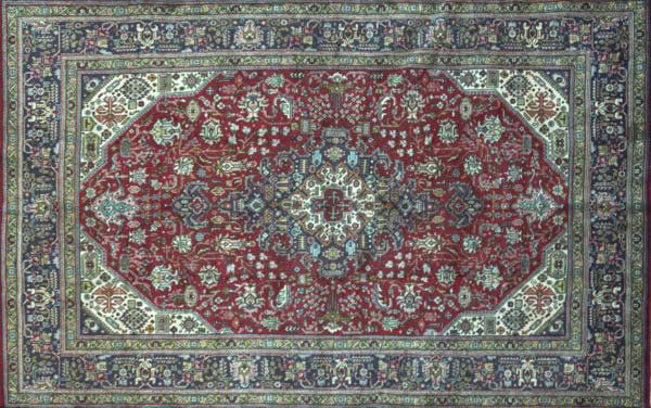 PERSIAN TEBRIZ Area rug with ruby red medallion an
