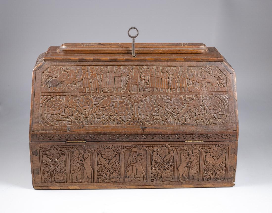 Late 19th Century European Hand-Carved Wooden Document Box with two Brass handles and EscutcheonCOAUCTION 4.4(15)$4004 days Left