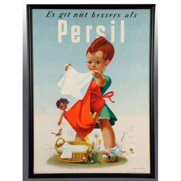 Sold1960s Persil Laundry Powder French Ad PosterItem/Description: Original vintage advertising poster for Persil washing powder. Linen-backed poster features an image of the Persil package along with white and yellow lettering, all on a green backgSee Sold Price