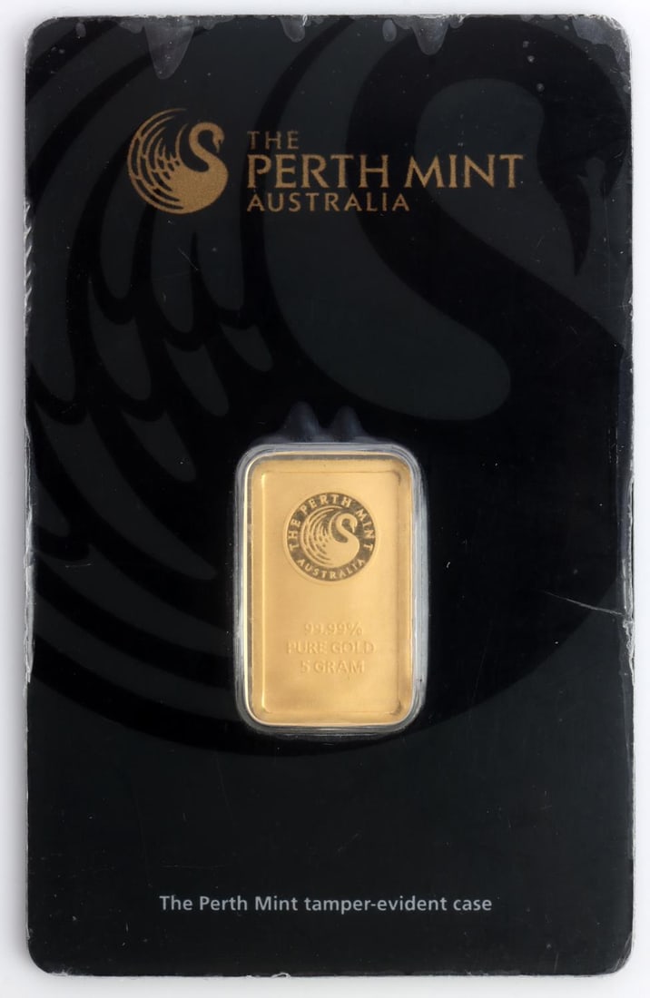 SoldPerth Mint Australia 5 grams Gold Bar 999.9 PurePerth Mint Australia 5 grams Gold Bar 999.9 Pure Tamper-evident CaseSee Sold Price